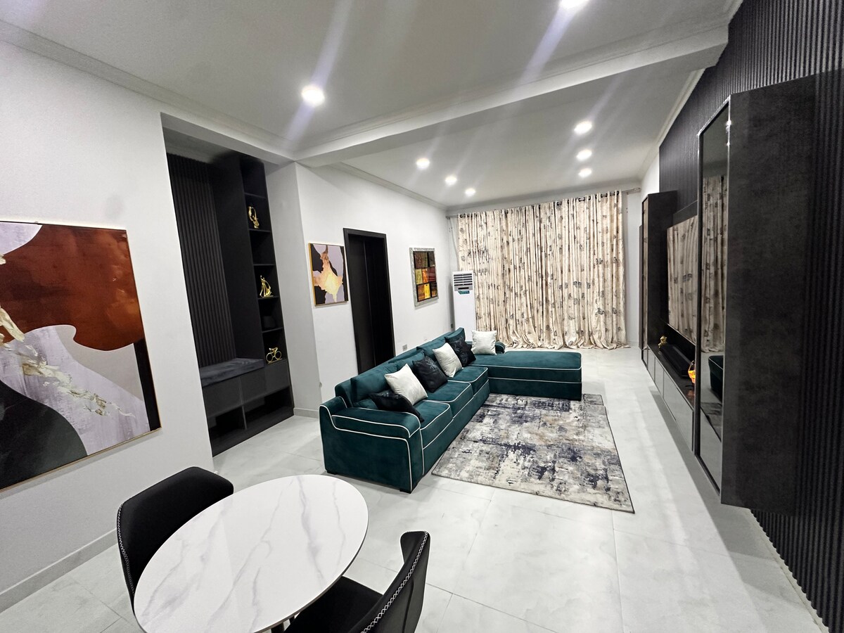 Bienvenido a Elmstead Luxury Aprt, su elegante refugio en Lekki Ikota. Este refugio de 2 dormitorios y 2 baños ofrece comodidad de aire acondicionado, un televisor de 65" en la sala de estar, televisor de 43" en los dormitorios, wifi ilimitado estable y gratuito y energía 24/7 con inversor y energía solar. Disfruta de llegada autónoma con cerradura inteligente, aparcamiento gratuito, lavadora en el alojamiento y un castillo hinchable para niños. 1 limpieza gratuita para estancias de más de 5-6 noches. Cerca del centro de conservación de Lekki, Mega Chicken, Blackbell y Blemco. Perfecto para viajeros solitarios, huéspedes de negocios, familias o estancias largas.