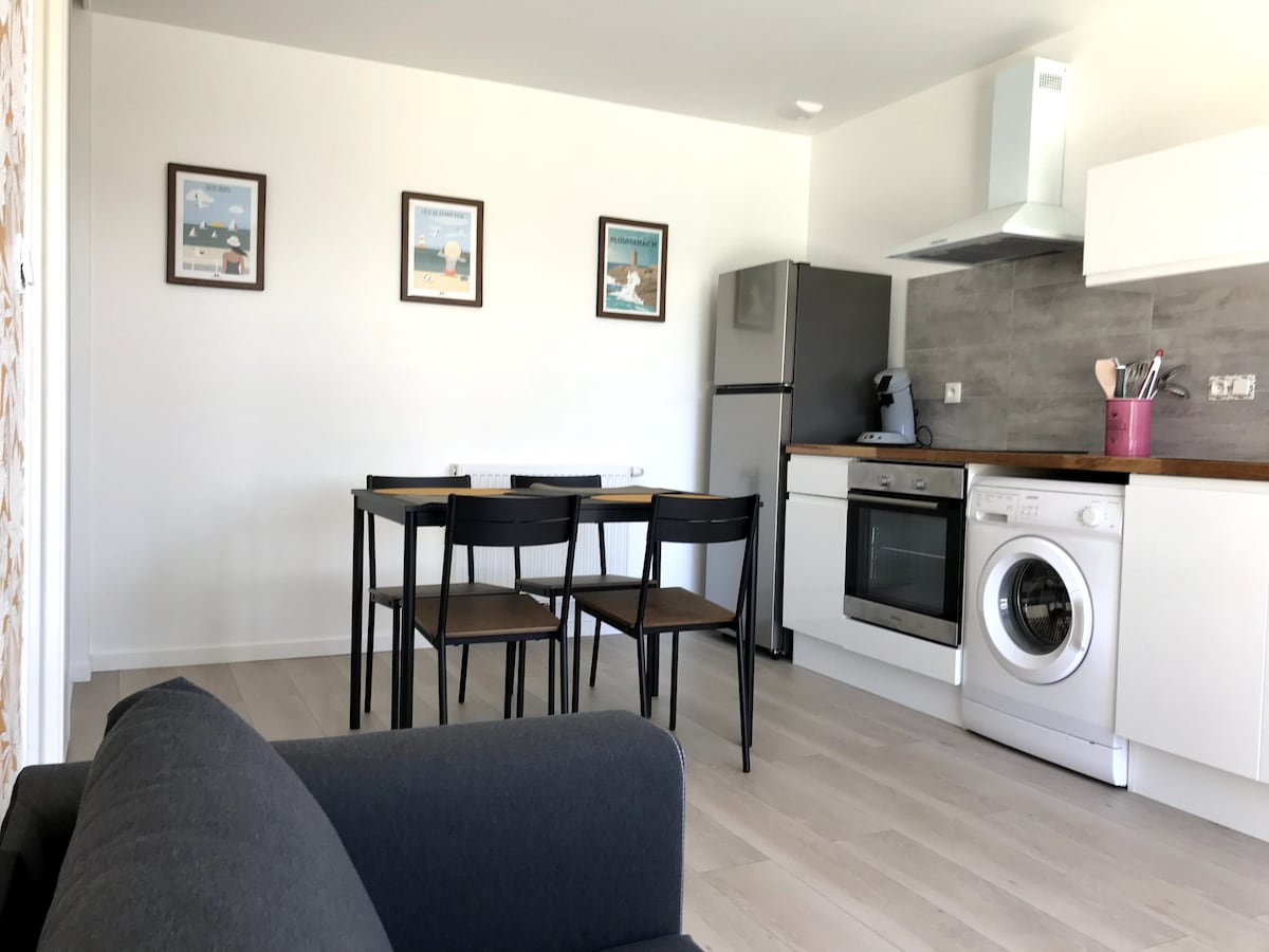 -estudio cerca de la playa de penvern a 50 metros -parking privado - pequeño jardín cerrado - Terraza orientada al sur - Cama en altillo 140/190 - sofá cama en la planta baja cocina equipada - baño, inodoro, lavabo, ducha 120/80, - TV wifi - Se admiten animales - Sábanas no incluidas (o suplemento)
