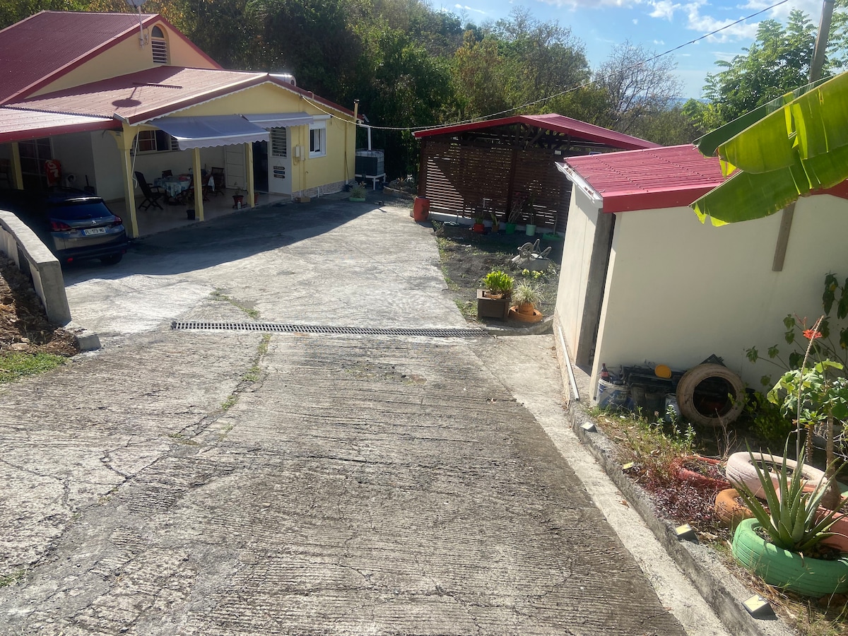 Apartamento con encanto, con todas las comodidades, con una decoración refinada y elegante, en el primer piso de nuestra villa, en un terreno arbolado en un entorno tranquilo, en una colina entre el mar y la montaña. Impresionantes vistas a la bahía de los Santos. Perfecto para 4 personas o una pareja con hijos. A 45 minutos del aeropuerto, a 5 minutos del embarcadero para ir a Los Santos y el inicio de la caminata de la coulisse. A 10 minutos de las aguas termales de Dolé, de la playa de Grand Anse (arena negra). A 15 minutos de las cataratas del Carbet