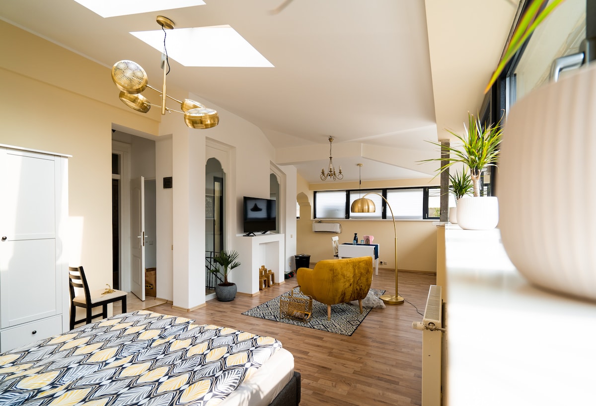 ¿Buscas un estudio fresco, cómodo y con un gran diseño en Bucarest? Situado en un edificio histórico en uno de los principales bulevares de Bucarest, «Now You See Me» es la opción perfecta para cualquier tipo de viaje. Elegante pero extremadamente cómodo, es un oasis para retirarse de las bulliciosas calles de la capital, ya que es un destino en sí mismo. Ya sea que estés buscando una escapada romántica, un lugar para trabajar de forma remota o simplemente estés aquí para disfrutar de la vida nocturna, «Now You See Me» es el hogar para ti.