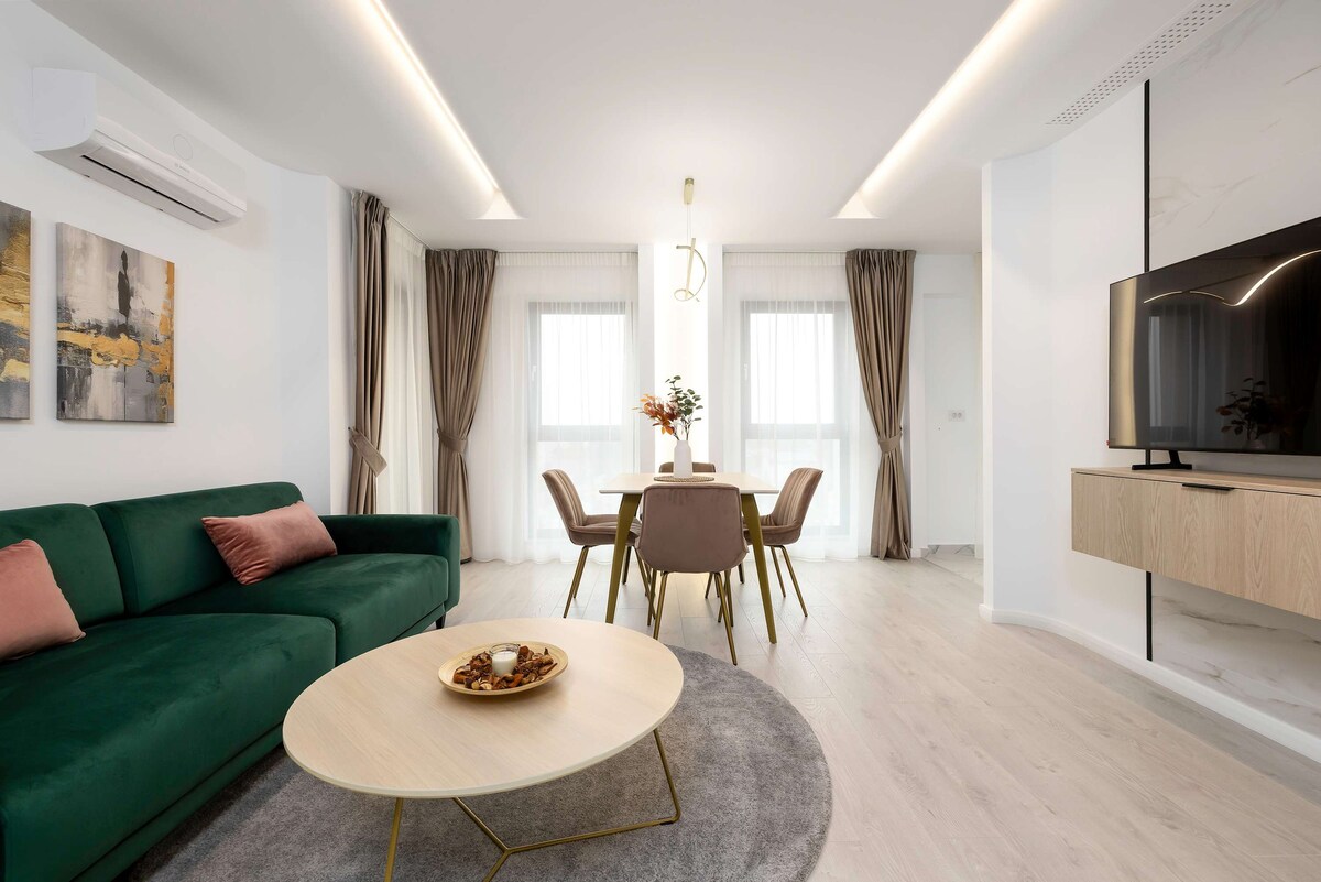Experimenta el epítome de Bucarest viviendo en este exquisito departamento ultracentral, ubicado en el prestigioso bulevar Unirii, a pocos pasos del vibrante casco antiguo y el centro de la ciudad. Disfruta de la espaciosa elegancia con 3 hermosos dormitorios, 2 baños modernos, una gran sala de estar con sofá cama, una cocina totalmente equipada y un balcón con vistas al emblemático Palacio del Parlamento. Diseñado para proporcionar un espacio cómodo para parejas, familias, viajeros solitarios o de negocios que buscan una estadía inolvidable.