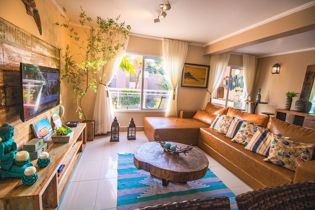 Quítate las chanclas, toca la arena, admira el mar, sonríe y siéntete como en casa. ¡Preparamos nuestro espacio con gran cuidado para ti! Las familias que buscan un lugar para crear y vivir experiencias que permanecerán en sus recuerdos para siempre amarán nuestro solárium privado con jacuzzi. Acogedor, romántico con una serie de luces y con el mar a un lado y las montañas al otro, ¡este espacio promete buenos momentos! La acogedora sala de estar tiene un cómodo sofá en cuero ecológico.