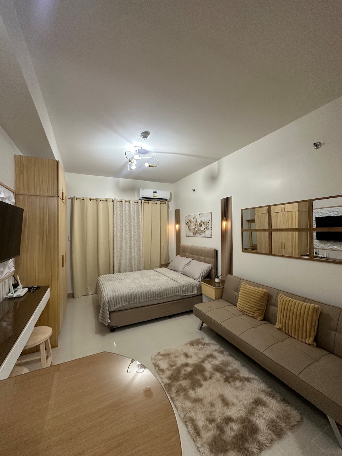 Inspirado en el diseño rústico y minimalista, este estudio totalmente amueblado es perfecto para estancias de negocios o de placer en el corazón de Iloilo. Cama ✓doble con sofá cama (hasta 3 personas) acceso a la piscina ✓wifi ✓ ✓aire acondicionado ✓Smart TV (con Netflix Premium) Registro de entrada ✓autónomo. 🛍️ A poca distancia de Atria Shops & Restaurants, QualiMed, Ateneo de Iloilo 🏙️ Cerca de SM City, Festive Walk Mall y el centro de convenciones de Iloilo 🛬 A unos 24-30 minutos del aeropuerto y 17-25 minutos del muelle de Parola para los viajes a Guimaras