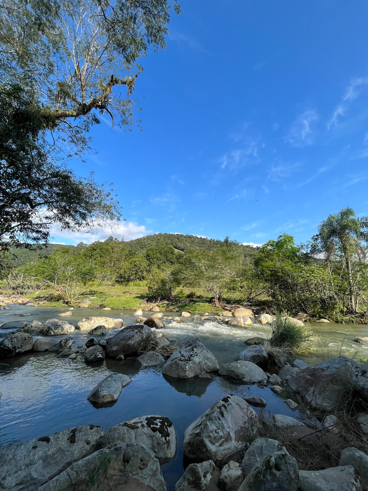 La Cabaña Jacana se encuentra en el sitio "A Sonhada". Entre las montañas, el río Duna y cerca de las playas más hermosas de Santa Catarina. Una cabaña hecha con técnicas de bioconstrucción y todas las comodidades en medio de la naturaleza. Situada a pocos metros del río Duna, cuenta con una plataforma para pescar, amarrar lanchas o dar paseos de stand up. La cabaña está situada dentro de un sitio de permacultura, con caballos, gallinas y huertos. Además, se encuentra a pocos kilómetros de las playas de Ibiraquera y Praia do Rosa. Relájese en este lugar único y tranquilo.