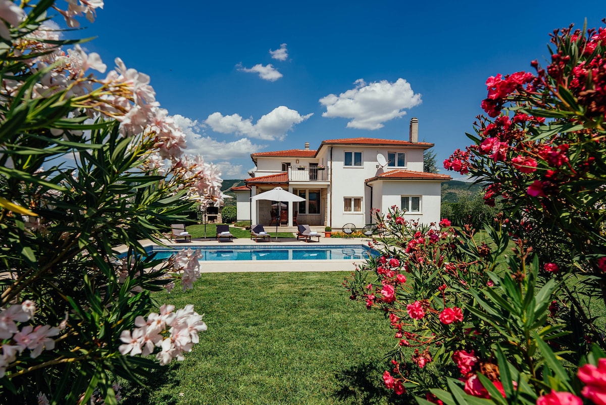 Te damos la bienvenida a nuestra hermosa villa en Donji Vinjani. ¡Esperamos que disfrutes de la estadía!Los alrededores tienen mucho que ofrecer y seguro que hará que tus vacaciones sean únicas. La villa es de 350 m3 grande y tiene una increíble piscina grande de 5x10 y piscina para niños 2x2, por lo que incluso los pequeños pueden estar en la villa. La ropa de cama y las toallas están incluidas para que disfrutes de una estadía más agradable. - La hora de entrada es a las 16 h y la salida es a las 10:00 h. - No se permite fumar solo en la casa. - No se permiten mascotas en la propiedad.