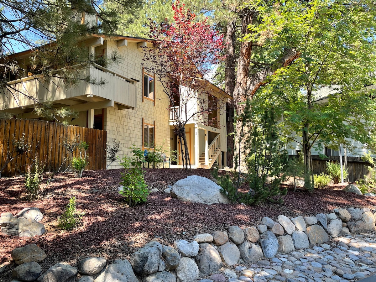 Este encantador apartamento está situado en el centro, es espacioso y es un lugar de relajación perfecto después de un día de diversión bajo el sol del lago Tahoe. Cuenta con una amplia sala de estar y comedor de planta abierta en el corazón de la hermosa Incline Village, cerca de restaurantes, cafeterías y el centro comercial Raley's. Respira el aire fresco de la montaña en la terraza al aire libre mientras tomas tu taza de café por la mañana o un cóctel al atardecer. Cuenta con una cocina totalmente equipada para todas tus necesidades culinarias. ¡Las playas, el senderismo y el ciclismo están muy cerca!