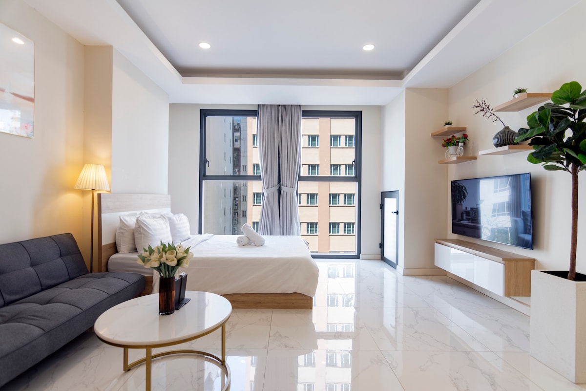 ✦Prime Location: in the heart of the city, Reunification Palace, Opera House, Saigon Central Post Office, City Hall, Book street, Ben Thanh market,Art Museum...just a few minutes walk ✦Comfort: spacious studio, a soft mattress, king-size bed, air conditioner, private balcony&large kitchen window-full of morning sunlight ✦Bed Linen: freshly changed for every new guest ✦Convenience: 24-7cafes,restaurants, bars,ATM,laundry,convenience stores nearby ✦NO LIFT:a good chance to stay fit💪(at floor 4th)