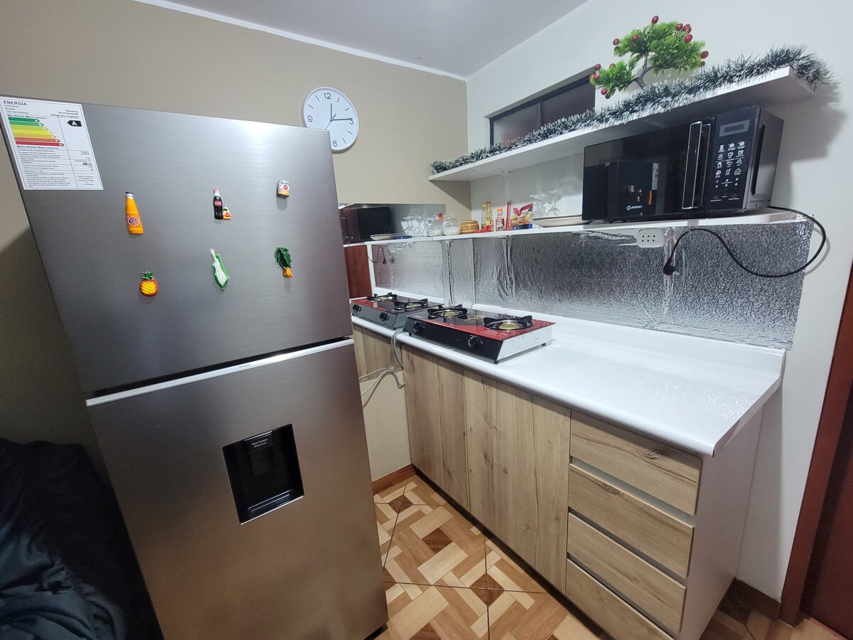 Monoambiente moderno y acogedor en Parque Naranjal – Los Olivos. Ideal para 2 huéspedes, con opción de alojar a una tercera en sofá cama. Este espacio cuenta con ingreso independiente, cama queen size, cocina equipada, microondas, hervidor eléctrico, licuadora, baño privado con agua caliente, TV 43", WiFi veloz, Prime Video, Netflix, Youtube Premium para una estancia cómoda y tranquila. ¡Estaremos encantados de recibirte y ayudarte en tu estadía en Los Olivos!