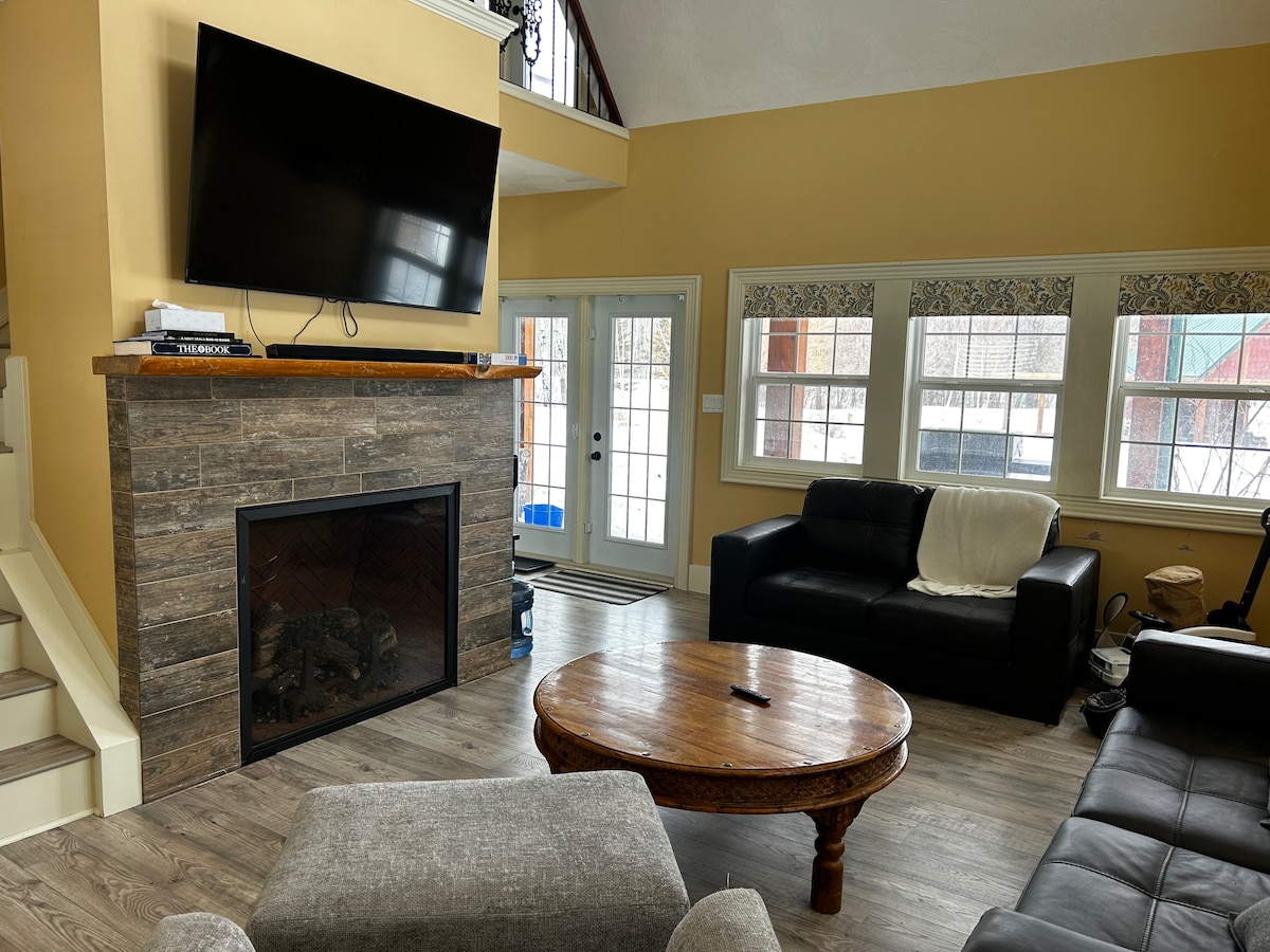 Retiro encantador: cabaña espaciosa y bien equipada con espacio para relajarse y disfrutar del aire libre. Alojamiento: loft (cama tamaño king + 2 camas individuales); dormitorio/estudio (cama tamaño queen); sala de estar (sofá cama doble + segundo sofá); habitación delantera (sofá); pintoresca litera (cama tamaño queen). Exterior: gran terraza, fogata, estacionamiento. A poca distancia a pie de: hermosa playa (natación/tomar el sol); heladería; servicio completo Big Way Store (comestibles, panadería, pollo frito, hardware, alcohol, agua, gas, etc.) e iglesia.
