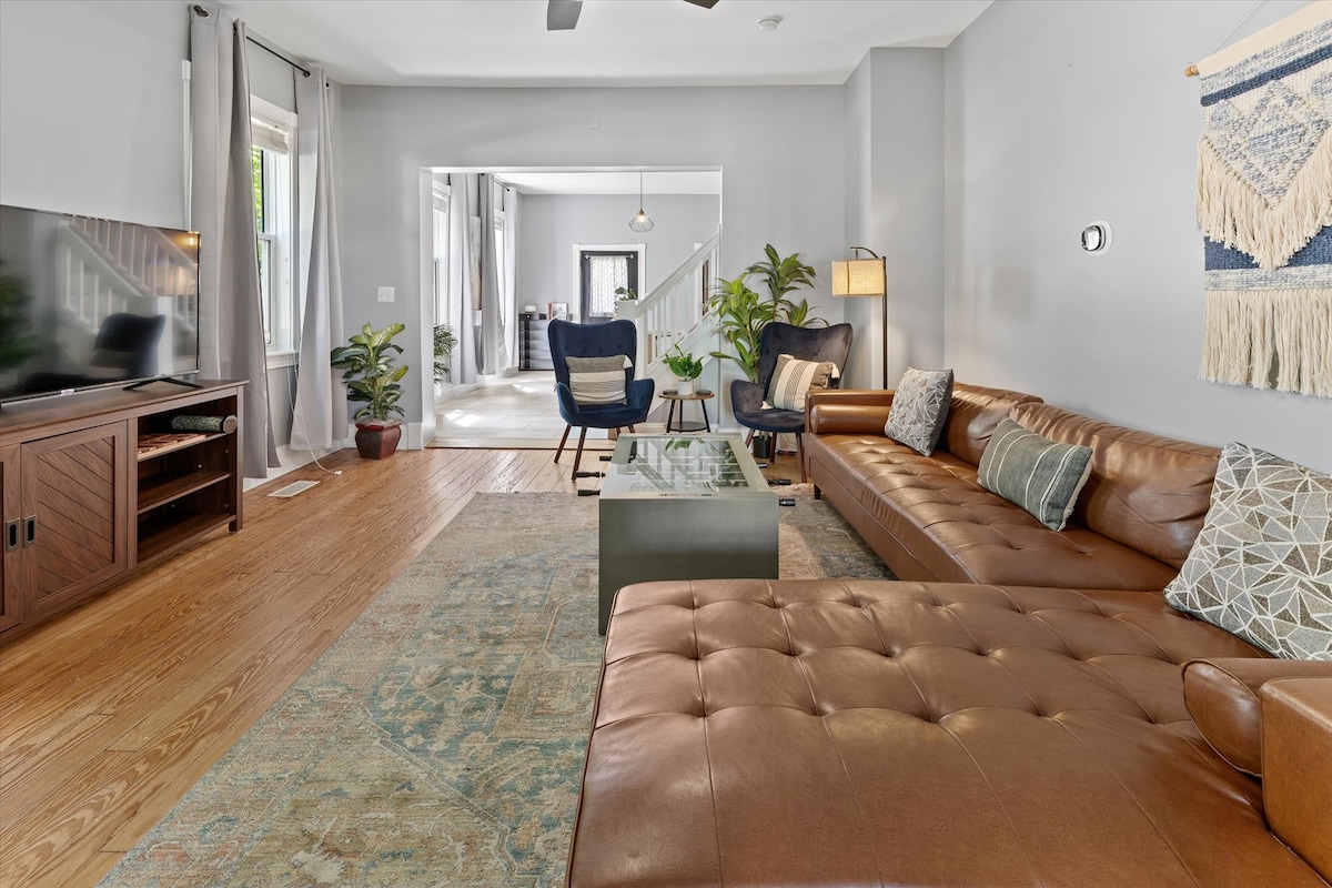 Relájate en esta casa de lujo, residencia familiar de alta gama situada en el rejuvenecido distrito de Bates Hendricks del centro de Indianápolis. Este es el mismo lugar donde se graba el programa de HGTV “Good Bones”. Viajes económicos con Uber o Lyft en cualquier lugar del centro A 1,6 millas del Centro de Convenciones, Lucas Oil, Pacers Stadium Innumerables restaurantes y entretenimiento en Fountain Square, Mass Ave y Downtown Internet de 1 Gig y café Keurig gratis Un garaje para dos autos y estacionamiento en la calle