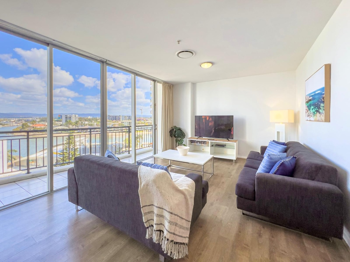 ✨ ¡Bienvenido a su espaciosa escapada en Chevron Renaissance! 🏙️ Con 2 dormitorios grandes🛏️, una cocina completa🍳, comedor🍷, sala de estar de gran tamaño 🛋️y lavandería completa 🧺. Disfruta de impresionantes vistas al río🌊, observa los barcos que navegan ⛵y disfruta del brillante horizonte de Surfers Paradise🌴✨. Perfecto para familias o amigos que buscan comodidad, estilo y la mejor escapada a Gold Coast🌞🌊.