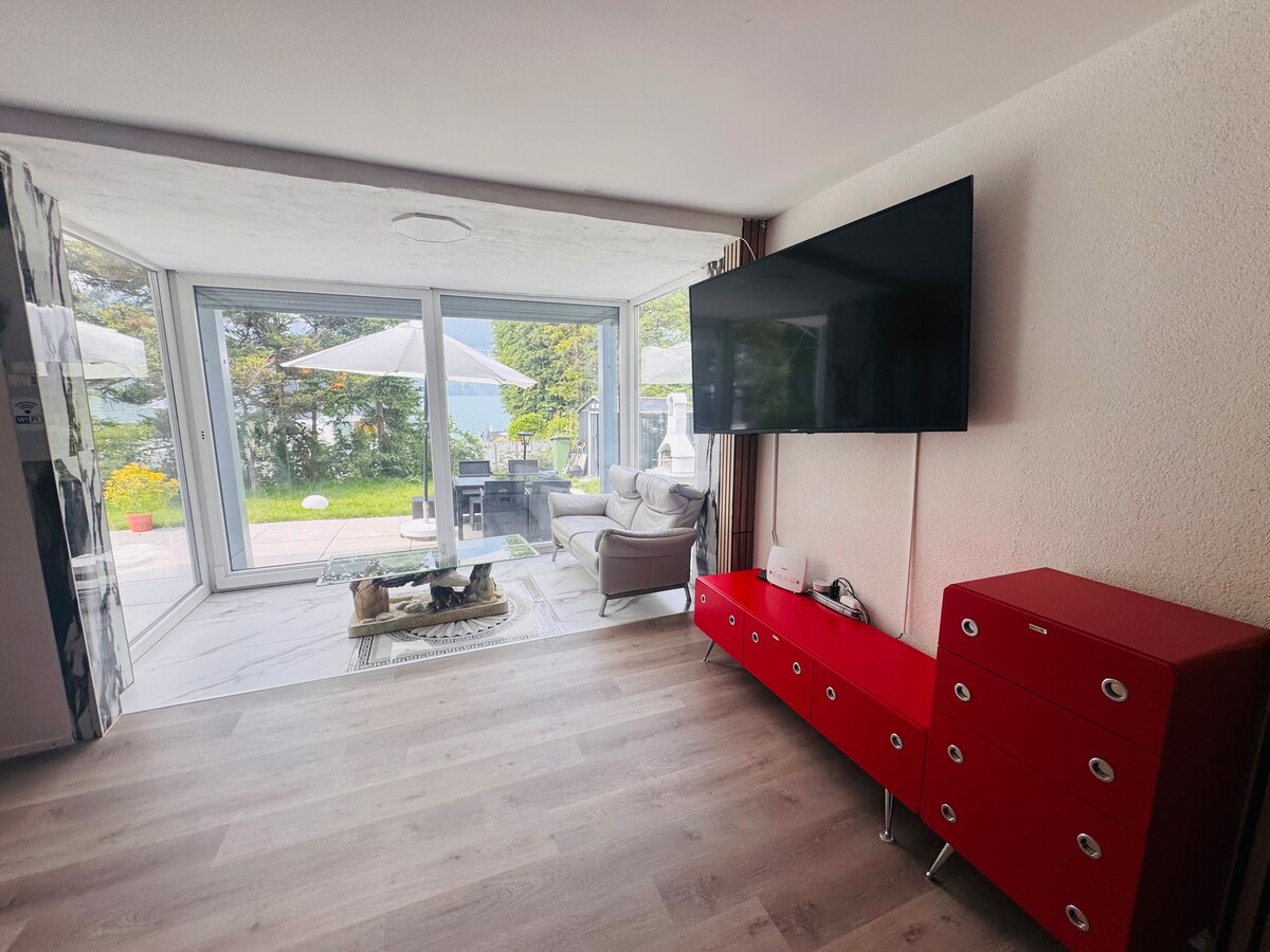 Este elegante apartamento, situado en lo alto del lago Brienz, tiene capacidad para 4 personas. Plazas de aparcamiento incluidas. •Póngase en contacto con nosotros para organizar la recogida y entrega gratuitas desde la estación de tren de Brienz.