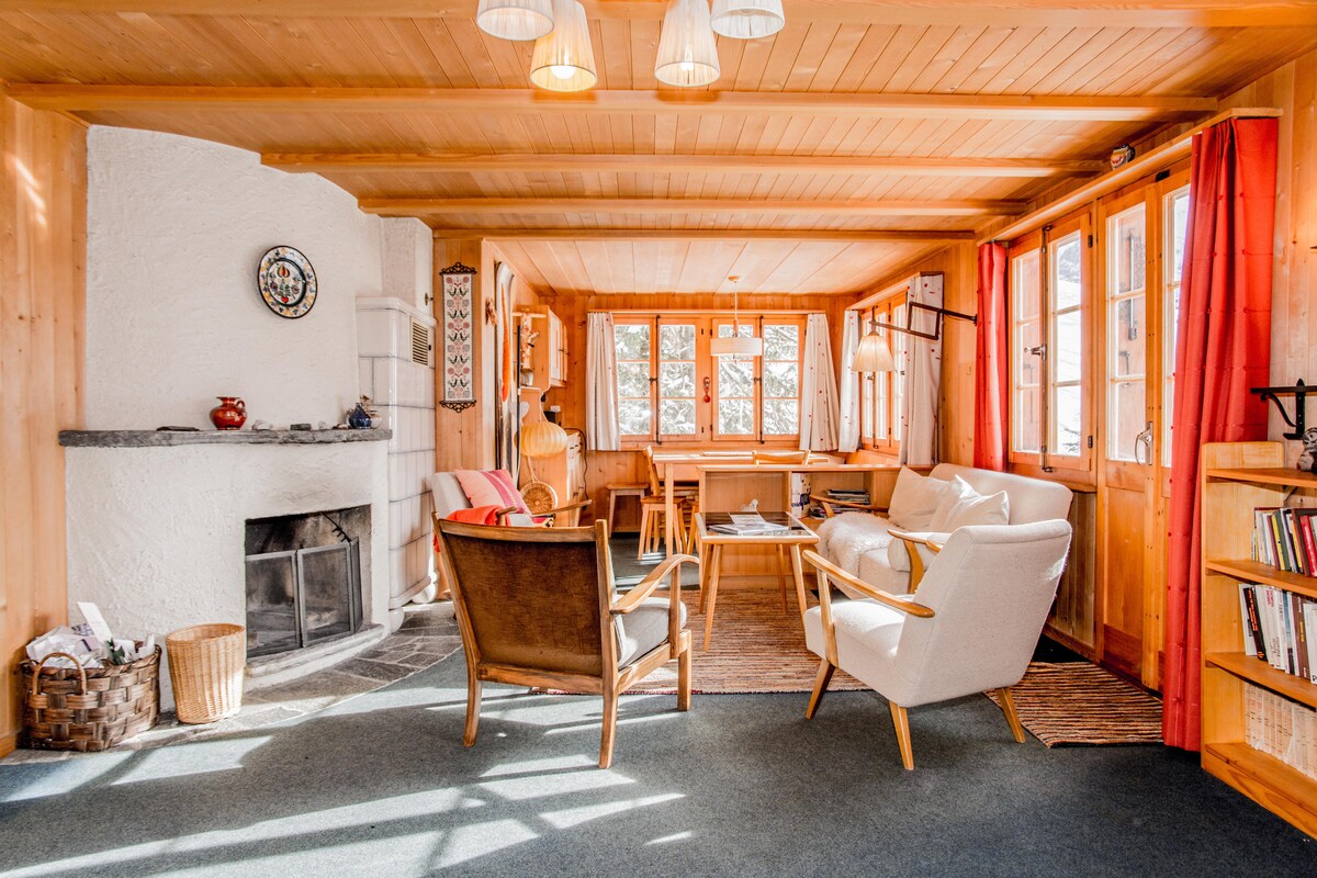 ¡Chalet en una zona muy tranquila con una vista encantadora! A 5 minutos a pie: estación, agencia de turismo: donde solo se te mimará para elegir entre caminatas y km de pistas de esquí: Wengen, Mürren, Junfraujoch, Schilthorn u otros deportes: bicicleta de montaña, parapente, rafting, etc. ¡En invierno, si hay suficiente nieve, puedes esquiar a casa! En verano, ¡una piscina pública a solo 3 minutos a pie! Adecuado para familias de 4 o 5 personas o parejas que buscan tranquilidad y una hermosa vista. 1,70m de altura máxima.