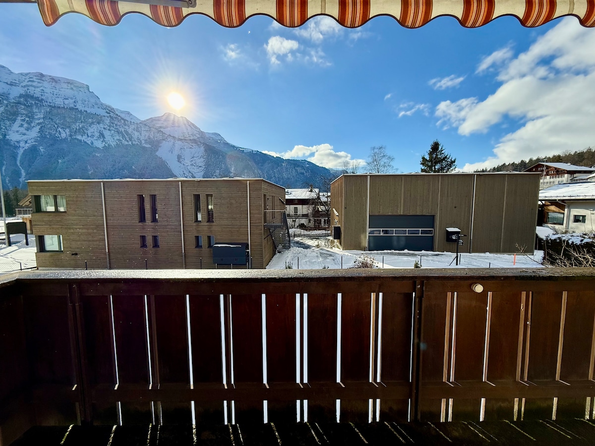 Moderno estudio en la pequeña ciudad de Ringgenberg. Amplia terraza con increíbles vistas a la montaña y un lugar tranquilo para volver y relajarse después de un día de turismo o actividades al aire libre. A pocos pasos tiene rutas de Senderismo, el lago de Brienz y servicios como banco, oficina de correos , restaurantes, pequeña tienda o panadería. Viaje gratuito en autobús con las tarjetas turísticas proporcionadas y a solo 2 paradas de Interlaken. La parada del autobús esta cruzando la casa.