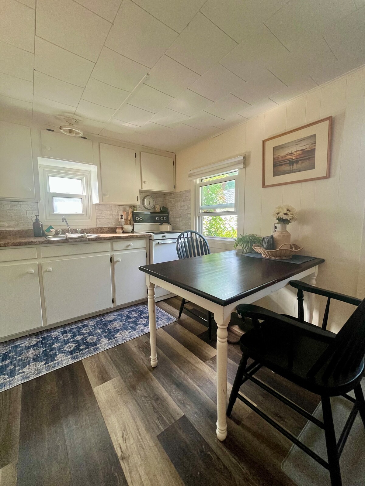 Relájate con la familia junto al lago y entre los cedros en este tranquilo refugio con estructura de cabaña alpina en la costa del lago Hurón. La puerta se abre a un gran salón y cocina con una vista de 180 grados del lago. Una isla de 8 pies rodeada de taburetes de bar ancla la cocina. Contempla las famosas puestas de sol del lago Hurón mientras comes o te sumerges en el jacuzzi. Nuestro frente es una playa rocosa con un pozo para hacer fogatas. Nadamos aquí con nuestros zapatos de agua. La playa de arena está a 2 minutos en coche o a 5-10 minutos en bicicleta.