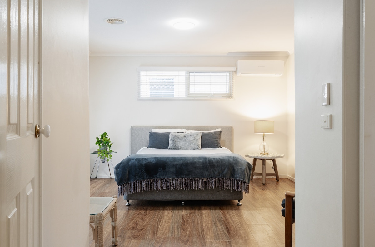 Relájate en Inlet Waters Escape, a solo unos minutos en coche del corazón de Inverloch, donde las impresionantes tierras de Kangaroo Bush se encuentran con Inlet Waters. La suite Grevillea King es una de las dos habitaciones independientes de nuestra casa familiar. Salga y dé un pintoresco paseo por la naturaleza a través de la ensenada. En la ciudad, disfruta de las cafeterías locales y navega por las tiendas locales. Disfruta del vino y de la pizza a leña en las bodegas cercanas. Explora Wilsons Prom y visita a los pingüinos en Phillip Island. Nota: No se ofrece desayuno.