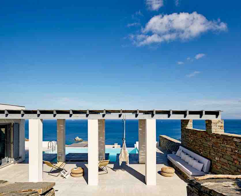 Villa frente al agua de 150 metros cuadrados con piscina privada,magníficas vistas al Egeo y acceso a una hermosa bahía de arena. Este espléndido refugio ofrece el mejor alojamiento para unas vacaciones perfectas en una de las zonas más vírgenes de Grecia.