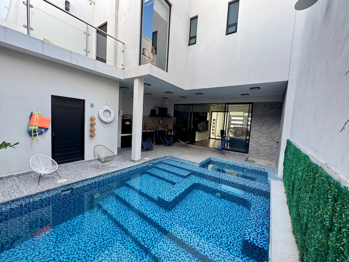¡Tu escapada perfecta con playa incluida! Finca espectacular que te ofrece lo mejor de dos mundos😮💨 Cuenta con una gran alberca rodeada de arena fina, creando un ambiente playero ideal para tomar el sol, relajarte o incluso acampar bajo las estrellas. En el interior, te espera un loft de diseño impresionante, con un cuarto rojo, decoración contemporánea y todas las comodidades necesarias para una estancia inolvidable. ¡Ven a vivir la experiencia de tener la playa en la ciudad! 🌴☀️
