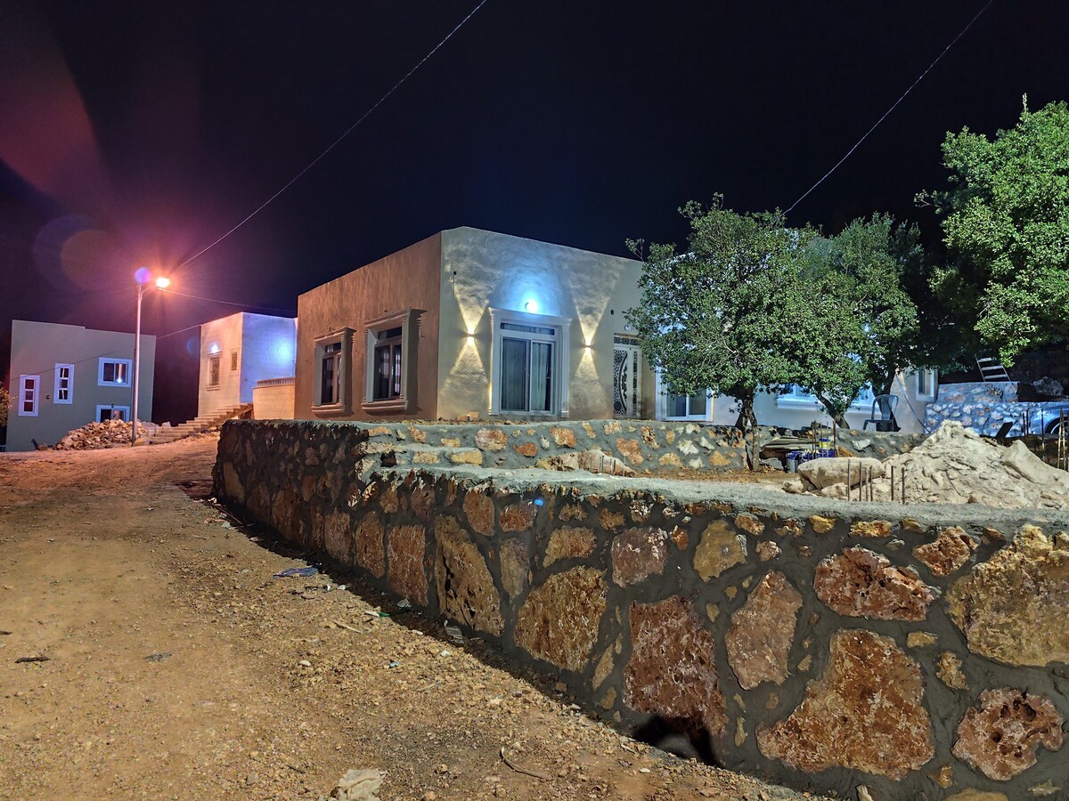 Relájate en una casa moderna rodeada de bosques y montañas de Ajloun Despiértate con vistas panorámicas desde dos amplios balcones. Temprano por la mañana puedes ver los paisajes de Alshiekh en el Líbano y Nablis en Palestina, disfrutar de un tranquilo jardín con árboles frutales y reunirte con amigos alrededor de la zona de asientos al aire libre y barbacoa. La casa tiene capacidad para seis personas, con una cocina totalmente equipada, un salón acogedor y dormitorios cómodos. Perfecto para familias, parejas o cualquier persona que busque un refugio privado cerca de la naturaleza