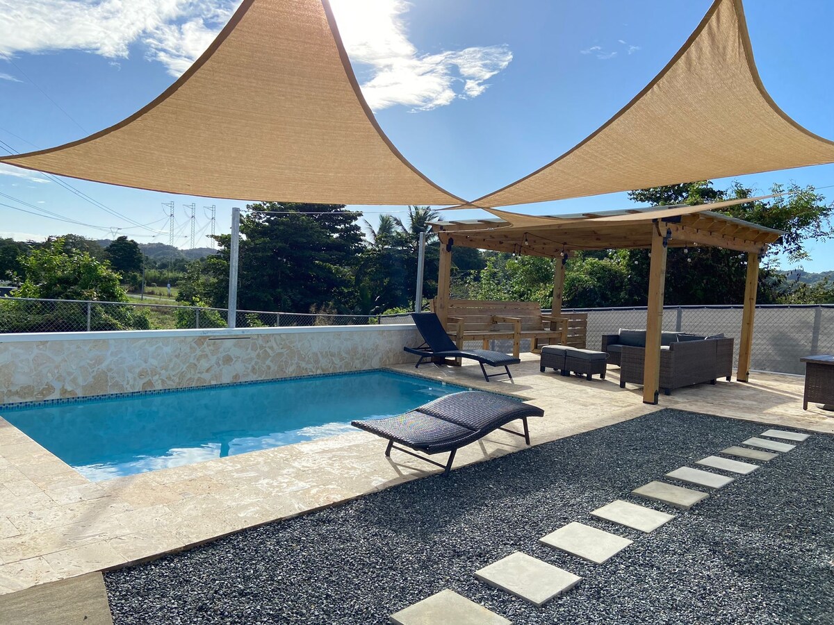 Relájate con toda la familia en este alojamiento donde la tranquilidad se respira. En una casa equipada con todas las comodidades para tu propio beneficio. Donde puedes relajarte y observar el amanecer desde la piscina. A solo minutos de un centro comercial y de las playas más bonitas del área noroeste de Puerto Rico.
