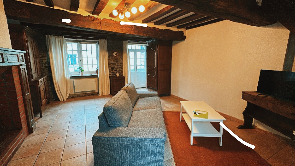 A 20 minutos del Monte Saint-Michel, ubicación ideal para descubrir Normandía y el norte de Bretaña con poco camino. Casa rural con todas las comodidades de 110 m2 en una casa de campo del siglo XVIII con todas las comodidades, no le faltará de nada en este alojamiento pensado para disfrutar y relajarse: ropa de cama de hotel nuevo - sofá triple y sillón - SmartTV 130 cm - Netflix - Youtube - Billar 140 cm- Wifi - Ropa de cama proporcionada -Jardín cerrado - Terraza - Comercios a 700 m - Llegada y salida independientes No se admiten animales