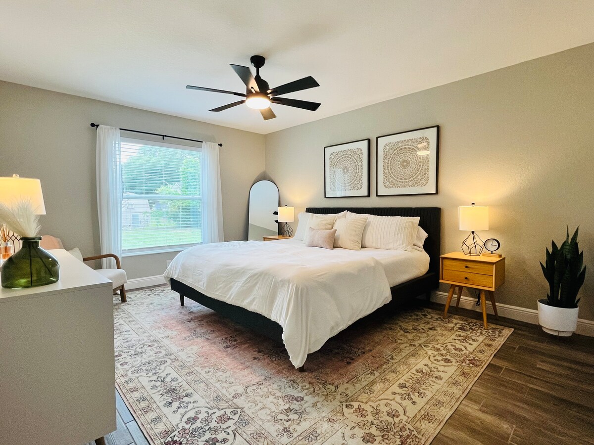 Retiro boho • Suite con cama king, patio cercado, WEC a 12 millas