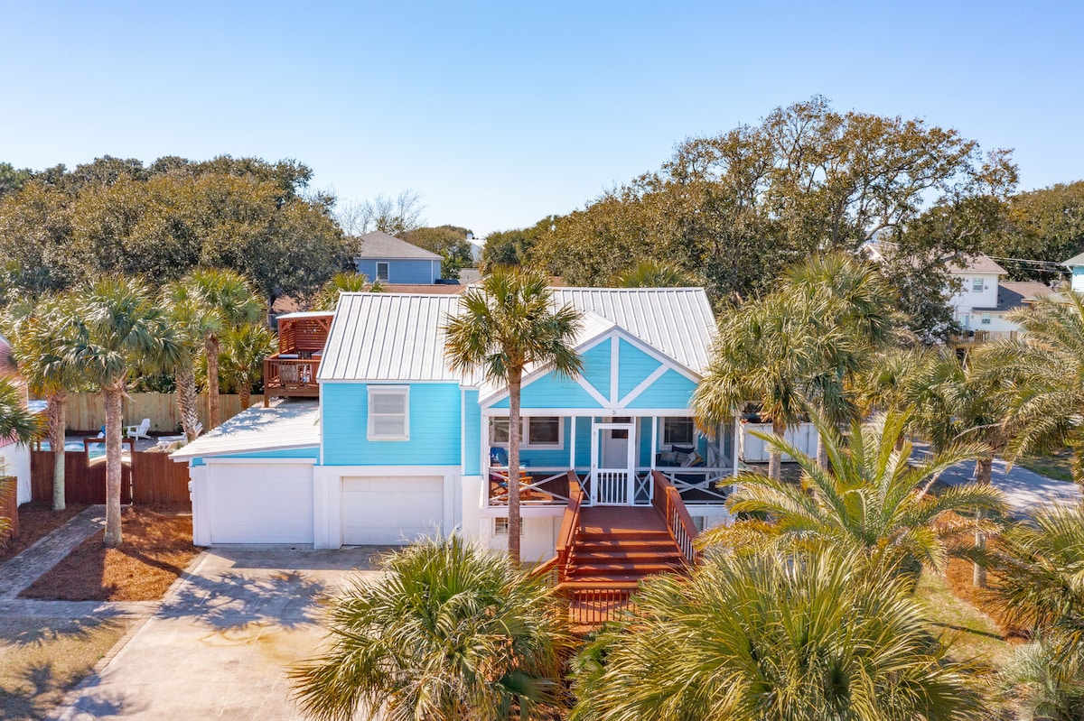 Vive momentos inolvidables en esta casa de playa familiar remodelada, a solo 2,5 manzanas de la playa. Acomódate con un buen libro en la cama colgante del porche, sumérgete en el jacuzzi (solo en invierno) o reúnete en la enorme terraza al aire libre. La casa tiene mucho espacio para vivir y comer, incluyendo un porche cerrado y un patio vallado. Ve en bicicleta o en carrito de golf a restaurantes, tiendas, canchas deportivas y parques infantiles cercanos. Termina el día relajándote junto a la chimenea de gas. El Charleston histórico está a solo 20 minutos.