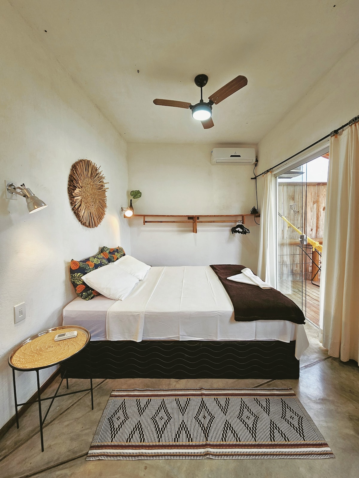 Con una excelente ubicación, este espacio se puede describir como una escapada en el corazón de Itacaré. El estudio tiene un balcón privado, una cocina de apoyo, una cama tamaño queen, en un ambiente espacioso, todo diseñado para la practicidad y comodidad de los huéspedes. Aunque es céntrica, la región es muy tranquila. Silencio, seguridad y buen vecindario están presentes.