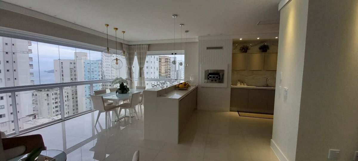 Disfruta de Balneário Camboriú en este departamento de lujo recién renovado con vistas al mar, cerca de restaurantes y mercados. Tiene 2 baños en suite, uno con cama tamaño king y vista al mar. Habitación con televisor LG de 75" y sala de cine con televisor Mini LED Ambilight de 65" y sonido Sonos Atmos Home Theater. Las luces, las cortinas, el aire acondicionado y los televisores son inteligentes y se controlan a través de Alexa Show. Cocina completa con refrigerador de puerta francesa, lavavajillas de 15 lugares, filtro de agua. La lavadora y secadora Samsung se encuentra en el balcón.