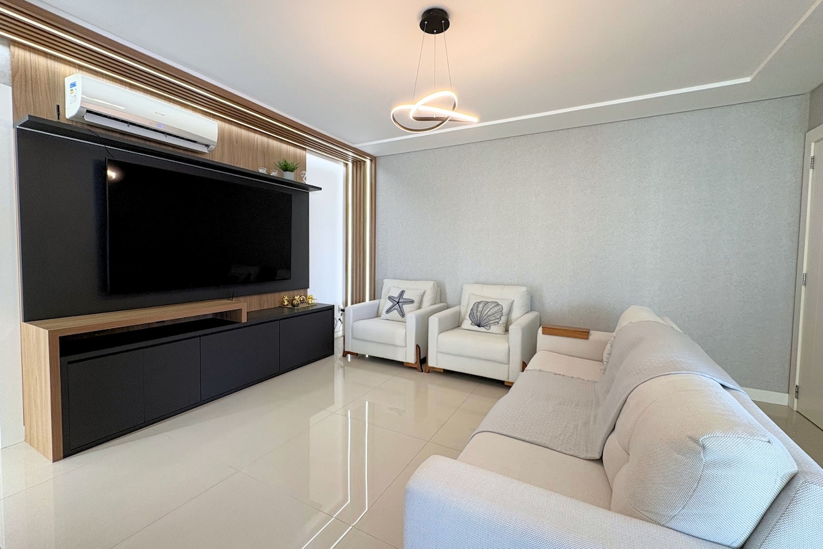 Lujoso departamento en el quinto piso de Residencial Atobá, en Av. Atlántico, con vistas panorámicas de todo el paseo marítimo de Barra Norte. Completamente renovado, moderno, espacioso y diseñado para ofrecer el máximo confort. La propiedad tiene 4 baños en suite, una amplia sala de estar, un balcón acristalado con impresionantes vistas y una cocina completa. Todas las habitaciones tienen aire acondicionado y están preparadas para recibir a los huéspedes cómodamente. La tarifa diaria es para un máximo de 6 huéspedes; por encima de eso hay un cargo adicional. Capacidad máxima: 8 adultos + 1 niño.