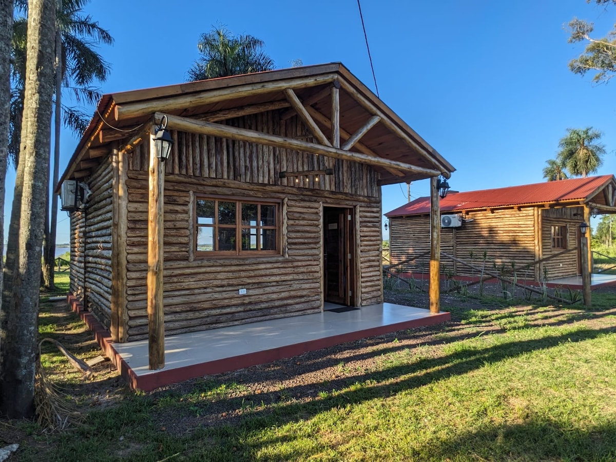 Ven a disfrutar de la naturaleza en nuestras cabañas. Tendrás a tu disposición una gran piscina y un hermoso lago donde podrán observar diferentes aves silvestres y apreciar la naturaleza que la rodea. Cada cabaña cuenta con aire acondicionado, heladera, cocina, horno electrico, microondas, hervidora eléctrica, cubiertos en general,baño privado con agua caliente, y servicio de wifi. Estamos ubicados en la ciudad de Yuty, con conexión internet.