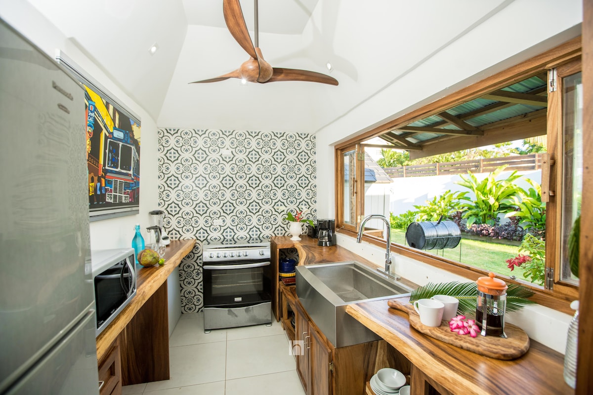 Tektime es un lugar para relajarse, disfrutar de la puesta de sol, las vistas y el aire de la montaña mientras te sientes como en casa enclavado en los árboles a 3600 pies de altura en la región cafetera de Jamaica Blue Mountain. Tektime es el jamaicano para «tomar las cosas con calma». Escucha a los pájaros posarse por la tarde o las voces de los recolectores de café que se van a casa y la ocasional cabra atada para alimentarse. Enciende la barbacoa y siéntate en el jardín con una copa de vino. Hicimos todo lo posible para poner todo lo que necesitas. Solo se permite fumar en el exterior.