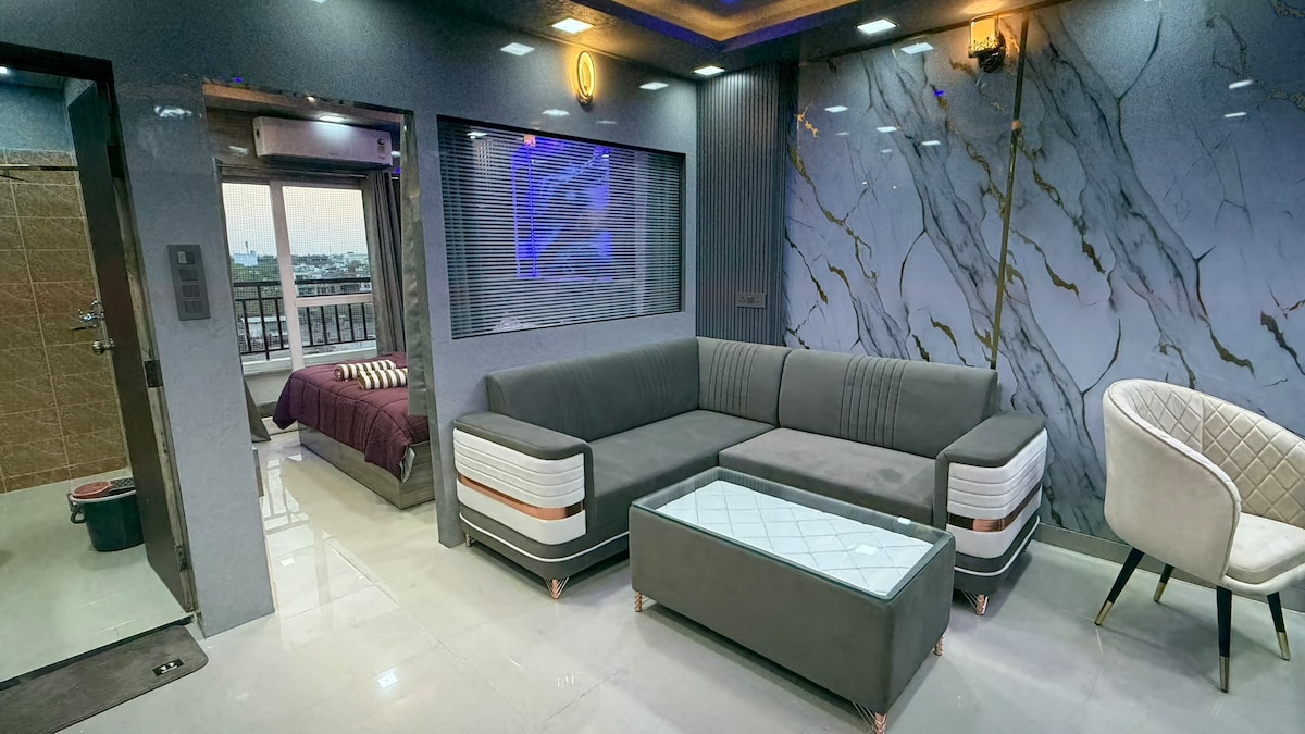 ¡Bienvenido a Jaipur! Ubicado en la zona más céntrica de la Ciudad Rosa, este exclusivo y espacioso apartamento tipo estudio de 1 dormitorio está diseñado majestuosamente para asegurarte de que disfrutes de la estancia más lujosa junto con todas las comodidades. Ubicado a solo 4 minutos de la principal estación de tren de Jaipur, es el lugar perfecto desde donde puedes explorar fácilmente Jaipur como un lugareño. Desde aquí, la ciudad amurallada está a solo unos minutos en tuk tuk para que puedas llegar fácilmente a todas las atracciones más populares de la ciudad de Jaipur.