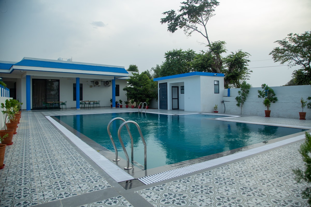 SaiBa OutHouse es una propiedad bellamente hecha en un área de 500 yardas. Ubicado en el centro de Jaipur, en Model Town, Malviya nagar. A pocos minutos a pie del centro comercial JTM. Es una propiedad de nueva construcción con una gran sala de fiestas de 400 pies cuadrados. Una hermosa piscina de 15x10 con una profundidad de 4,5 pies. Impresionantes áreas de jardín y terraza. Y 4 dormitorios para que puedas traer a toda la familia a este gran lugar con un montón de espacio para divertirte. Safari de leopardo cerca de Jhalana.