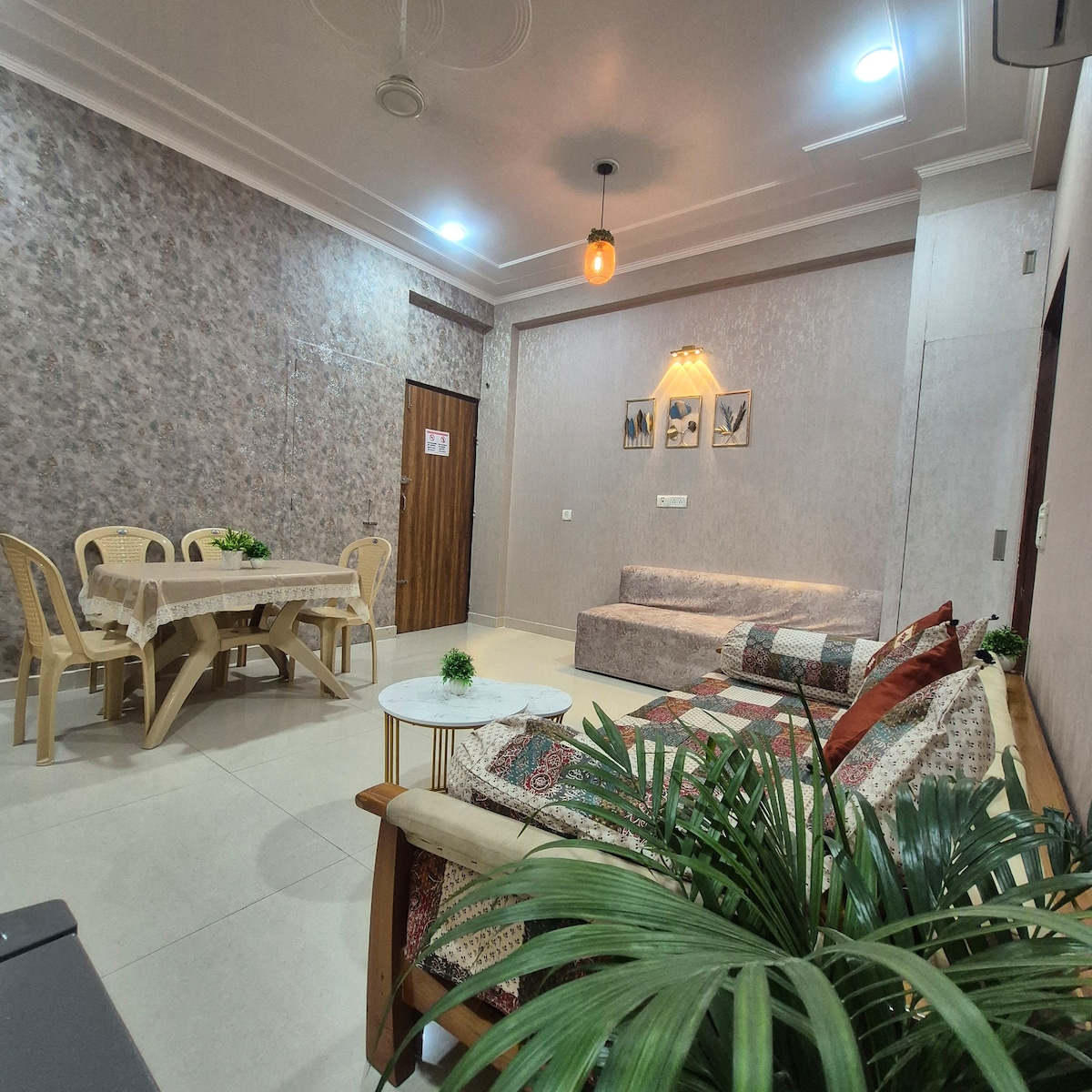 Welcome to Aura Luxe by The Sleepy Monkey. Centrally located 2BHK apartment on Tonk Road, Jaipur, just walking distance from Gandhi Nagar Railway Station and 12 minutes from Jaipur Airport. This luxury flat features a 120-inch projector screen with JBL Dolby sound, creating a private home theatre experience. Whether you want to enjoy Movies, Netflix and Chill, Cricket, Football or anything else - we've got you covered. Ideal for families, business travelers, couples, and small groups.