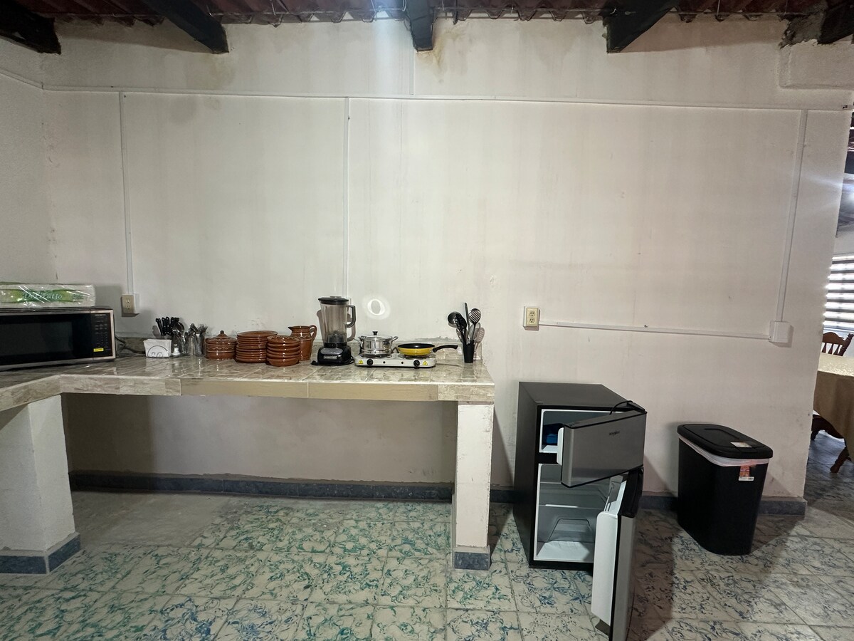 La casa cuenta con una alberca privada con agua limpia de manantial a temperatura ambiente, que se cambia cada vez qué hay nuevos huéspedes, cocina, comedor para 8 personas, mesas y sillas al lado de la alberca, asador, 2 baños completos, 3 habitaciones con una cama matrimonial cada una, 1 sofá cama, sala, televisión con cable e internet. Estacionamiento dentro de la casa para 1 carro. Cuenta con una cerca eléctrica y cámaras de seguridad, las cuales se desactivan al llegar los huéspedes.