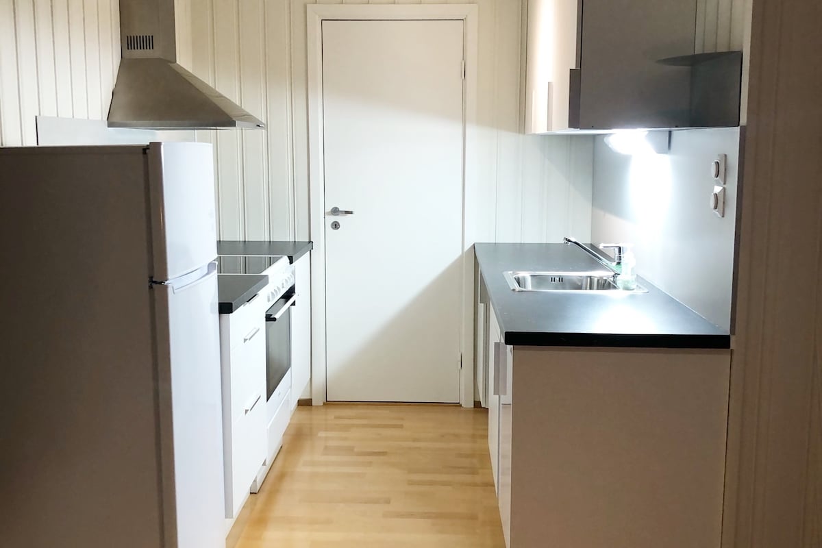 Fin og moderne leilighet med sentral beliggenhet. Nyoppusset i 2019. 7 minutter gåavstand til sentrum. Stille nabolag. God sofa som kan brettes ut ved behov for ekstra soveplasser, medfølgende tykk madrass, fint spisebord og behagelige stoler. Kjøkken og bad. Gode senger. Dundyner i høy kvalitet. Rullegardin på soverommet. Ovn og vifte. Te, kaffe, vannkoker, krydder etc. er tilgjengelig.