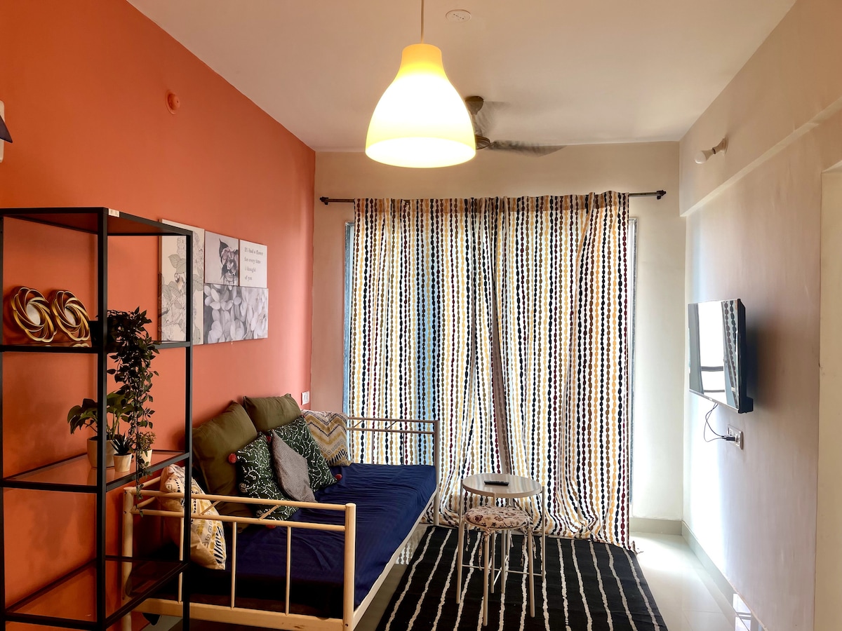 Este es el acogedor apartamento de 1BHK para parejas con un gran entorno natural situado en el Sector 25A, Ulwe, Navi Mumbai. Este 1BHK está equipado con todas las cosas necesarias que necesitarás durante tu estancia. El aire acondicionado está instalado solo en el dormitorio. El salón tiene una gran vista de la pequeña montaña. Hay actividades de construcción de edificios que se están desarrollando a medida que se desarrolla la zona. Pero Uber/Ola/Zomato/Swiggy están disponibles las 24 horas del día.