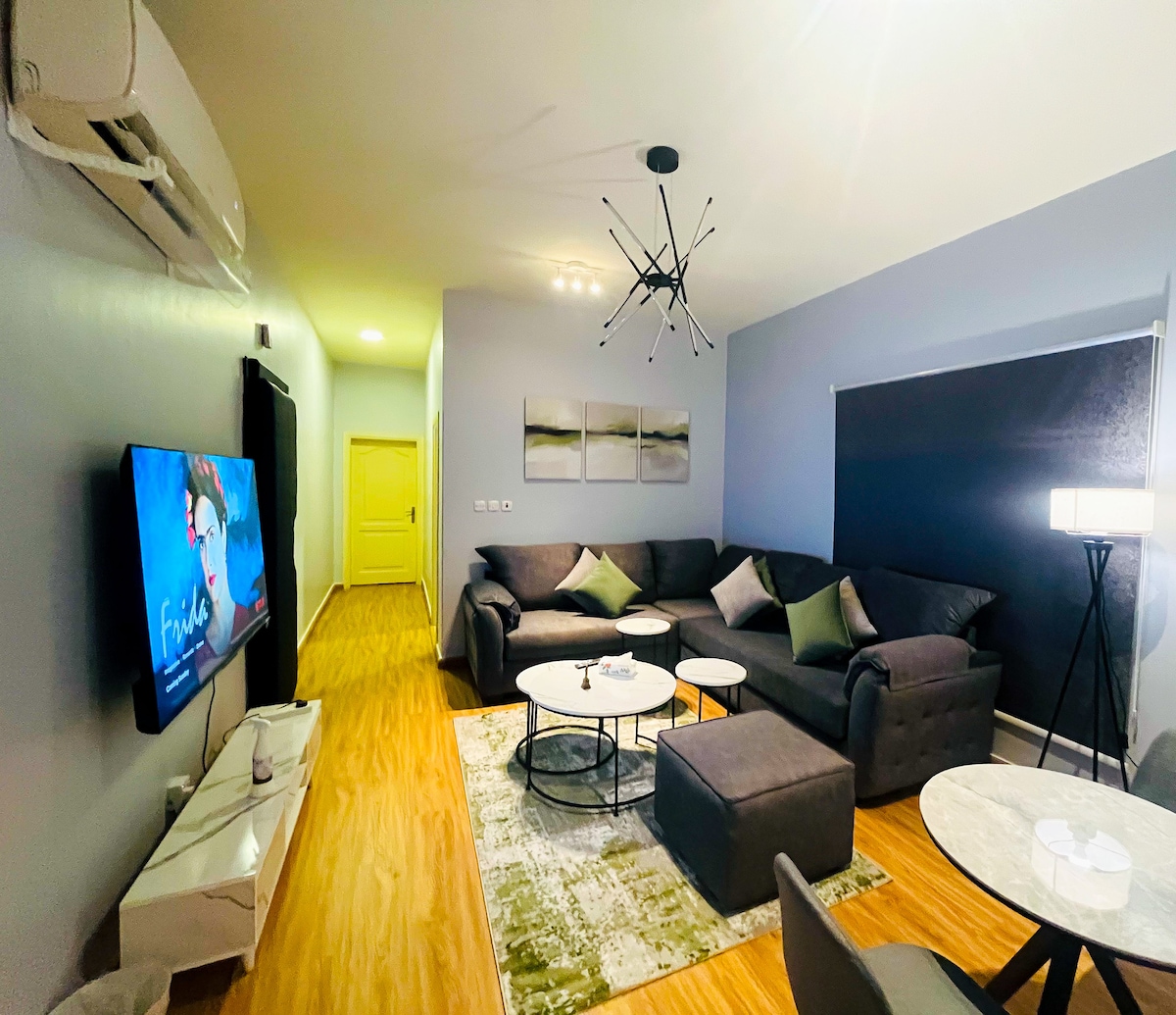 Disfrutarás de una experiencia de lujo en este céntrico alojamiento. Un modesto apartamento en el centro de la ciudad puede ser «el punto de partida perfecto para explorar la ciudad, especialmente diseñado para a quienes les gustan los estilos modernos y cálidos». En coche: El aeropuerto está a 15 minutos. Corniche a 16 minutos. Pista de Fórmula 1 a 15 minutos. Centro comercial del mar Rojo a 16 minutos. Centro comercial de Arabia a 8 minutos. Caminando: Lavanderías a 5 minutos. Supermercado a 5 minutos.