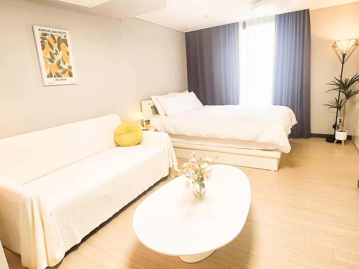 Estacionamiento gratuito, descuento por estancias consecutivas, check-in autónomo y descuentos especiales para el crucero y el Museo Arte Netflix y Lotte Mall a 3 minutos Dongdongine 1