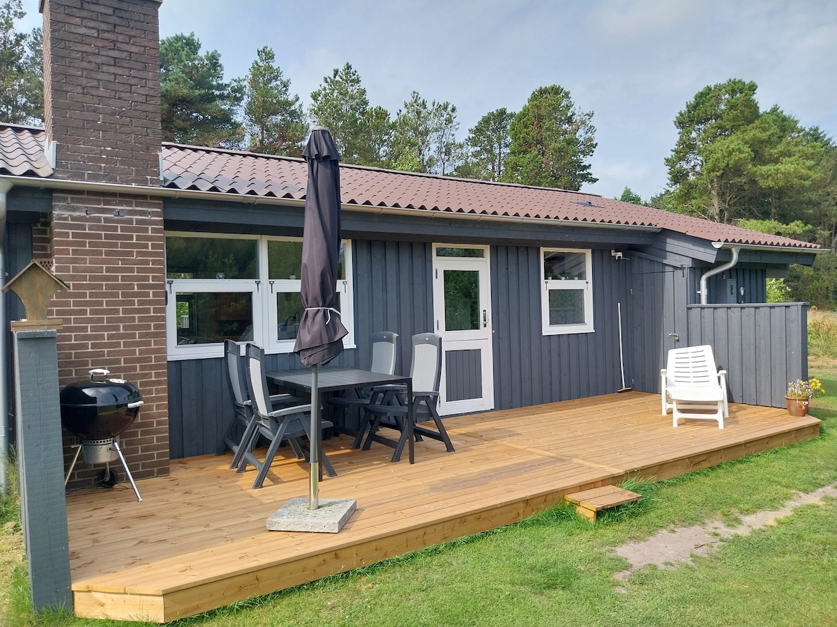 Nuestro pequeño complejo familiar en Bratten es una acogedora cabaña apta para niños cerca de la hermosa playa. Aquí disfrutamos de días tranquilos en la naturaleza, paseos por la playa y juegos en el jardín, y nos gusta compartirlo con los demás cuando no podemos estar aquí. La casa se adapta perfectamente a una pareja o una familia pequeña, con un dormitorio con cama doble y otro con litera. La gran parcela natural está intacta y rodeada de árboles, con mucho refugio y paz del ruido del tráfico.