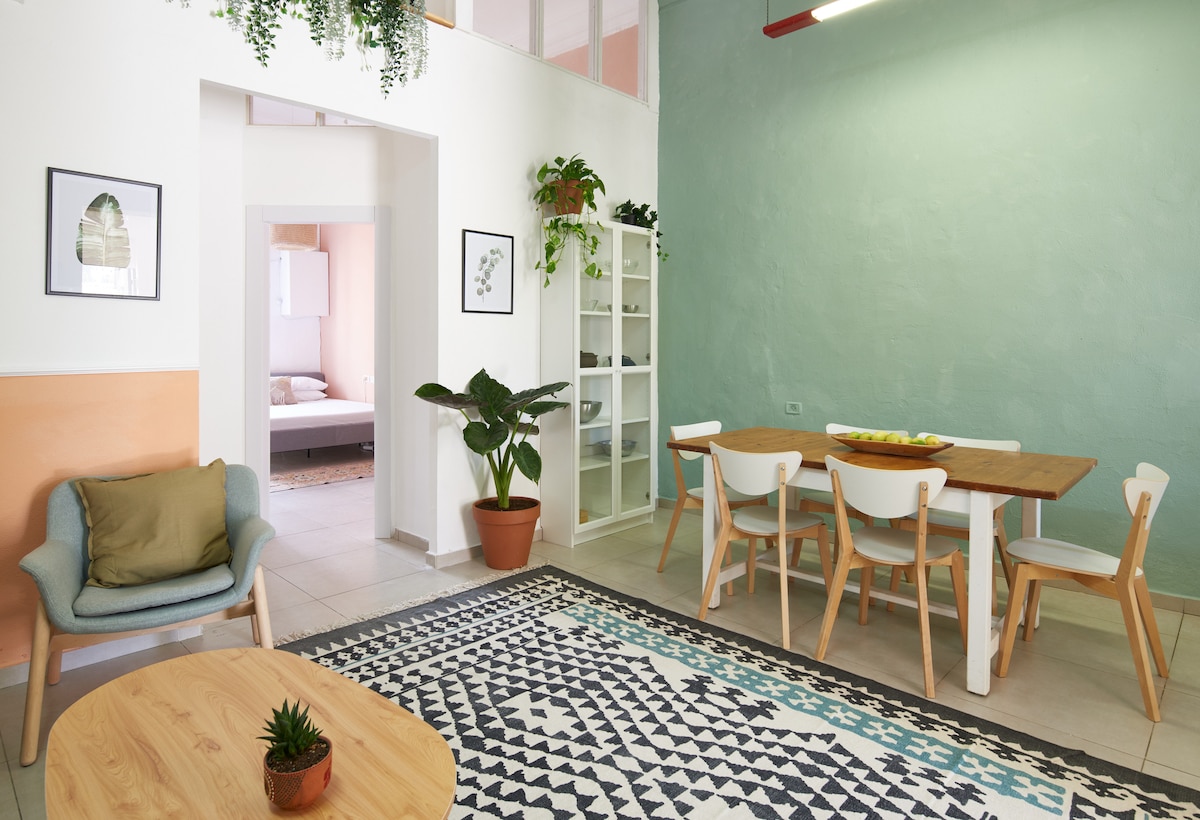 *Refugio en el apartamento*<br>Este apartamento especial es único en Jerusalén. Este hermoso mini ático es amplio y de diseño con una hermosa terraza grande. La comodidad y la calidez del apartamento te harán sentir como en casa. Disfruta de la terraza para relajarse o comer. Este alojamiento está totalmente equipado. El departamento está ubicado en el centro de Jerusalén, a 2 minutos de Mahane Yehuda Yehuda en una calle tranquila junto a Yaffo.