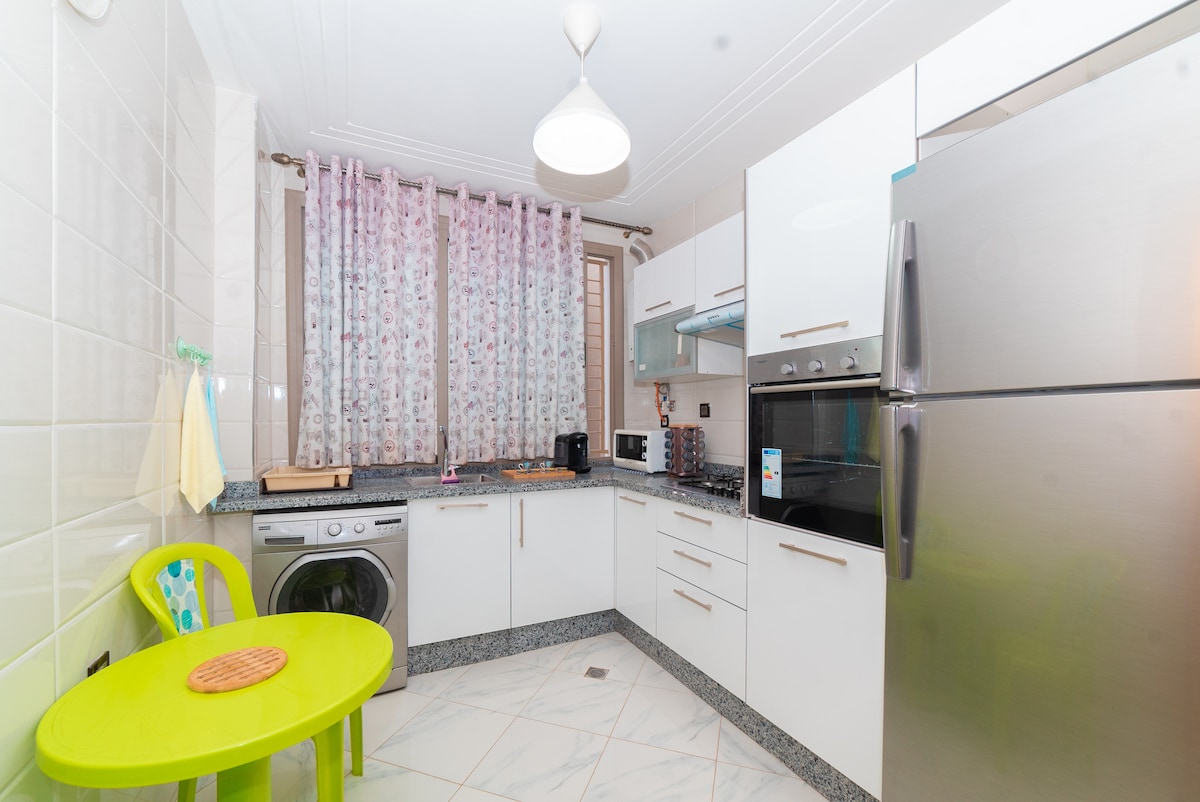 Su estancia se completará a la perfección con una casa de ensueño, tranquila y cómoda, que puede descubrir en Sami Apartment. Situada en las inmediaciones de la medina y a solo 10 minutos de la Puerta Azul, esta casa goza de una ubicación ideal. También encontrará un supermercado Bim cerca, así como una cafetería tranquila que ofrece un excelente servicio. La casa está equipada con todas las comodidades necesarias e incluso ofrece libros para sus momentos de relajación.