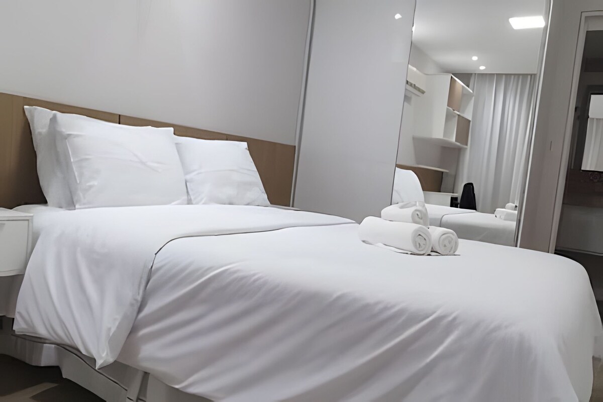 Moderno apartamento con 2 camas individuales o una cama doble: comodidad y practicidad en el edificio Move Tambaú, ¡a solo 300 m de la playa de Tambaú! La unidad tiene capacidad para 3 personas, con una cama doble que se puede dividir en 2 camas individuales y un colchón adicional. Se admiten familias o grupos pequeños. El apartamento está amueblado y equipado con: - Cama cómoda, habitación con aire acondicionado; - TV inteligente, - Wifi, - Aire acondicionado - Cocina compacta. Hay sábanas de cama y de baño disponibles. ¡Reserva ahora y disfruta de João Pessoa!
