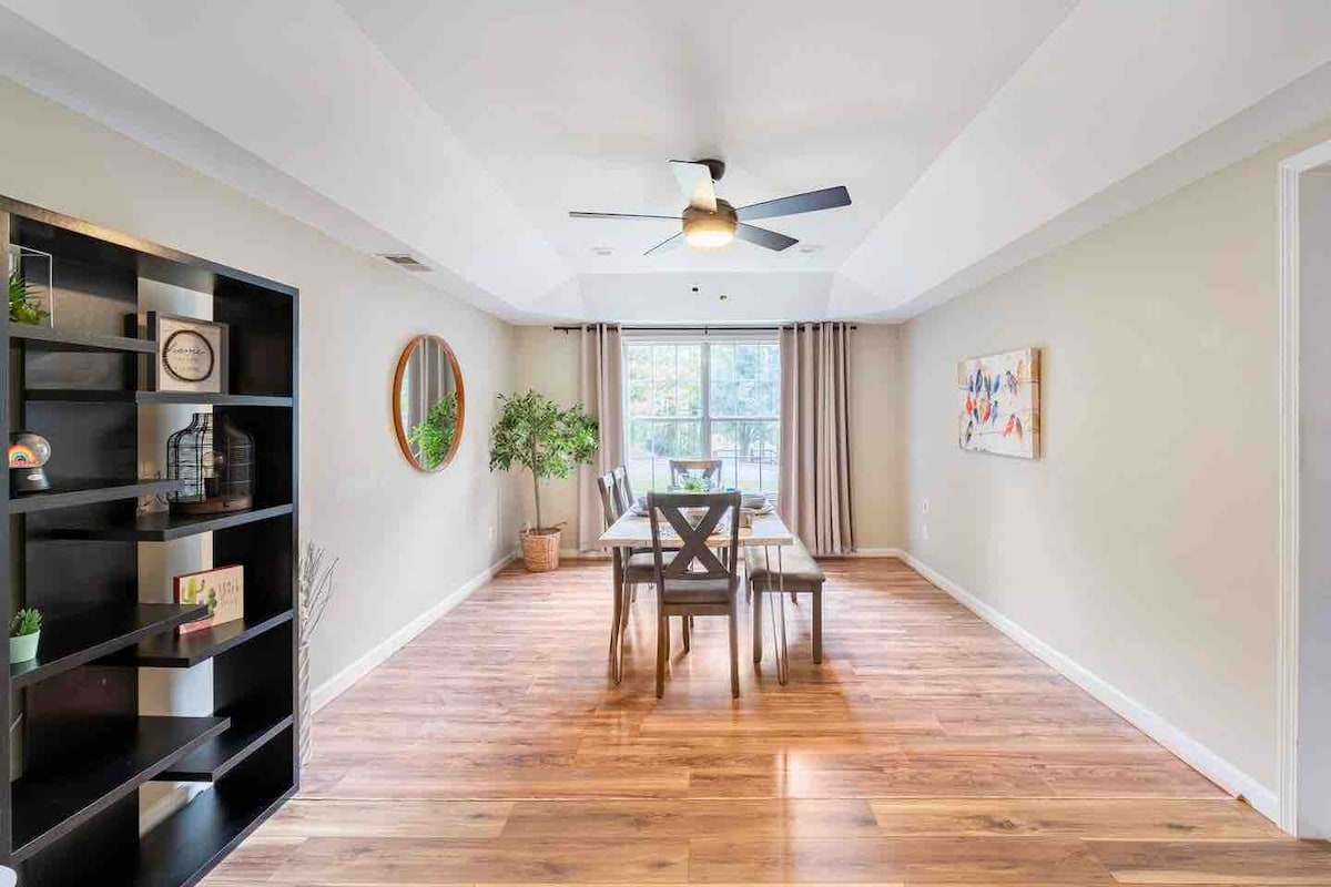 ¡Bienvenido a nuestra encantadora suite privada de 2 dormitorios y 1 baño en el corazón de Sugar Hill, Georgia! Esta acogedora unidad en la planta baja ofrece una entrada privada, ducha que cumple con la ADA, baño completo, cocina totalmente equipada, comedor para 6, espacio de trabajo y cómoda sala de estar. Decorada con esmero para que te sientas como en casa. Mi esposa y yo vivimos arriba y estamos disponibles si es necesario, respetando plenamente tu privacidad. ¡Ven a disfrutar de la verdadera hospitalidad sureña y del dulce encanto de Georgia!