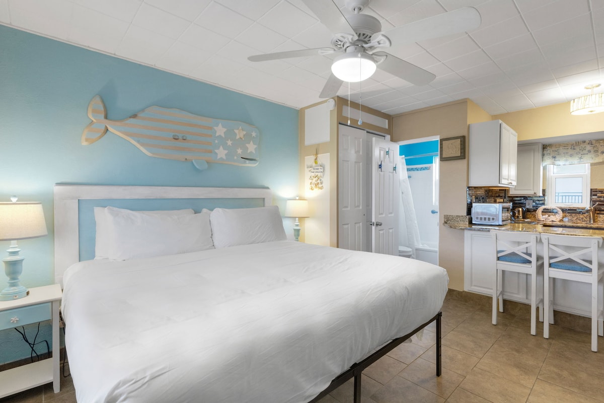 Suite Tropic Terrace #15 — Estudio relajante junto a la piscina en Treasure Island 🌴 La suite n.º 15 del Tropic Terrace Resort es un acogedor estudio frente a la piscina que combina el encanto tropical con una ubicación inmejorable. Ideal para parejas o viajeros solitarios, esta acogedora unidad ofrece un refugio tranquilo a solo unos pasos del exuberante patio del resort y la piscina climatizada frente a la playa.