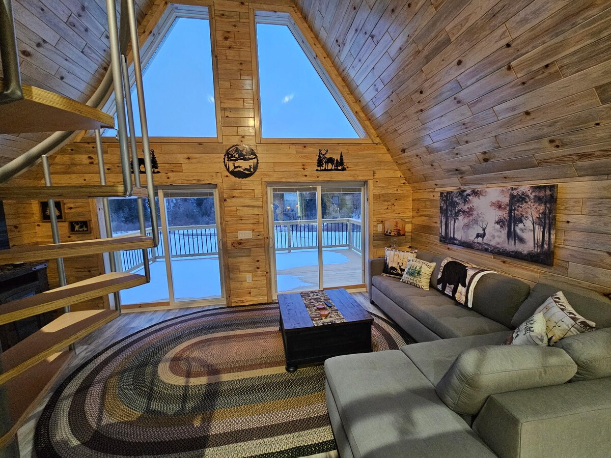 Retiro, escapada aislada pero cerca de la ciudad. Esta acogedora cabaña es rústica con un toque elegante, decoración y actualizaciones recientes. Ubicado en privado en 2 acres boscosos y cerca de la ciudad. 2 chimeneas de piedra, bañera de hidromasaje interior, 2 1/2 baños, 3-4 dormitorios y jacuzzi exterior para 7 personas. Excelente wifi, cocina y comedor. Zona de picnic, parrilla y chimenea. Gran follaje de otoño, cerca de esquí, senderismo, lanzamiento de barcos. Totalmente equipado, ¡solo tienes que traerte a ti mismo! Dispuesto a recibir huéspedes, ¡pregunta!