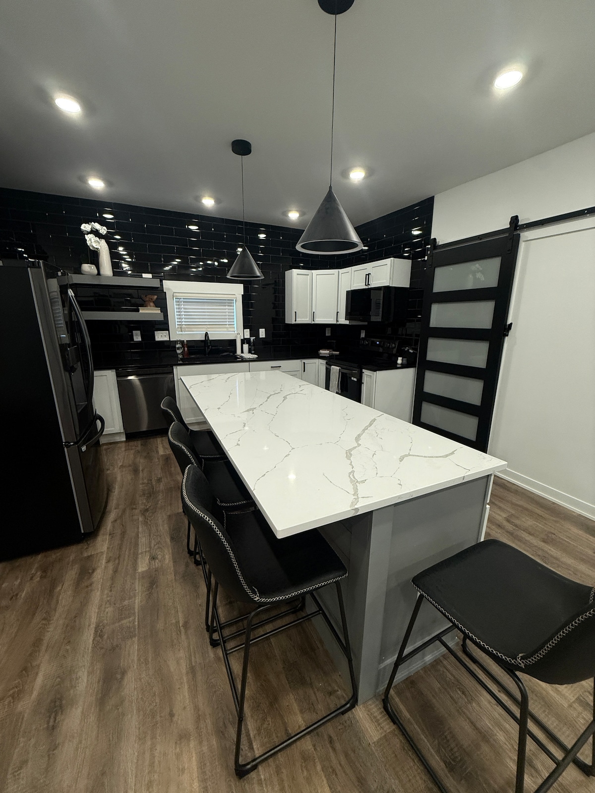 Experience luxury city living with spectacular views from your own private balcony! Enjoy the convenience of being just steps away from over 60 locally owned restaurants, breweries, pubs and shops. Endless entertainment options - from concerts, to ice skating, and a summer splash pad across the street. Our 1,208 square foot loft is perfect for everyone—relax in style and comfort with designer furniture, modern amenities, and sleeping space for 8 people. Lots of space for your group to enjoy!