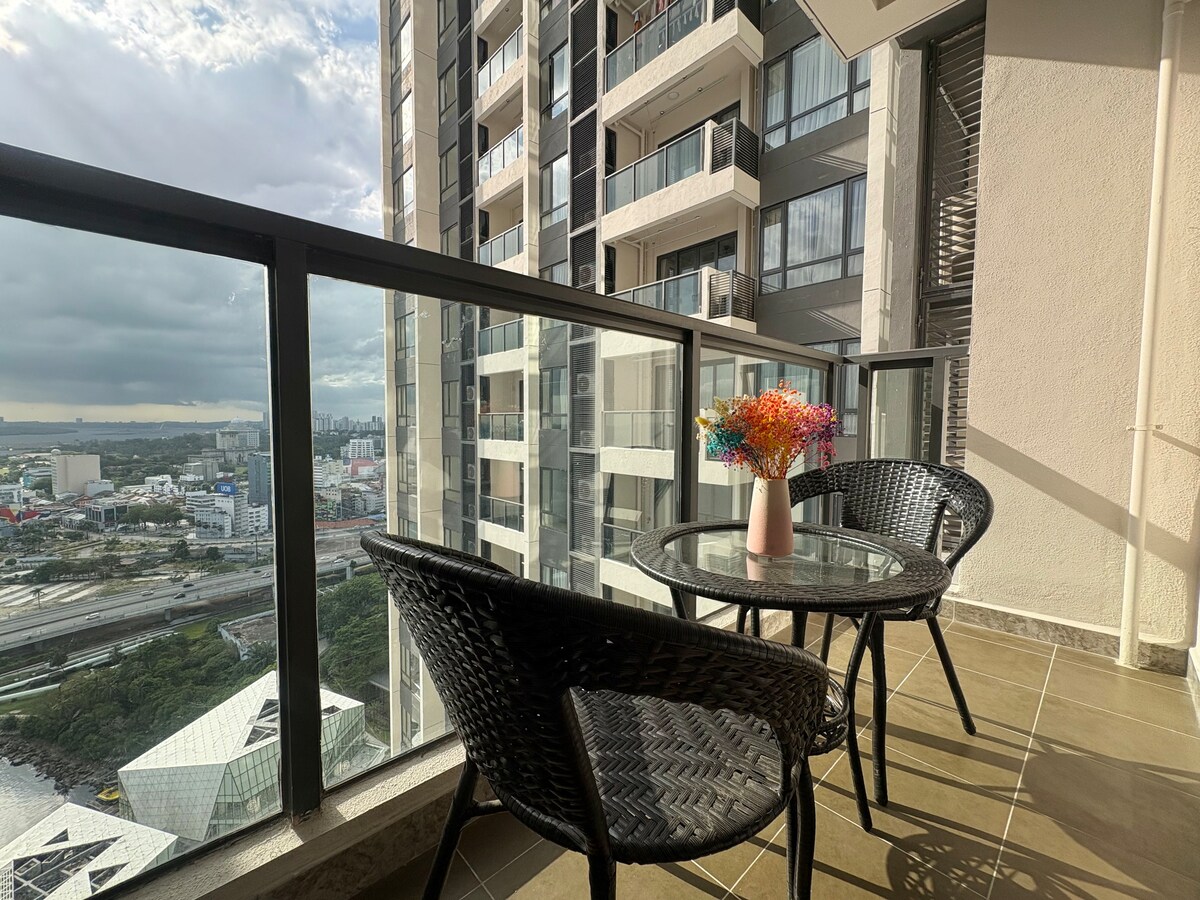 ¡Bienvenido a nuestro acogedor estudio de estilo moderno para 2 personas! ❤️ Nuestra ubicación está en el corazón de la ciudad de Johor Bahru, a solo 5 minutos del puesto de control de CIQ. 🚗 Es muy adecuado para parejas , familias pequeñas, viajeros de negocios o turistas. 🌹 Nuestra unidad con hermosas vistas al piso alto que tiene vistas ininterrumpidas de la ciudad de JB. 🥰 Y este lugar también rodeado de tiendas convenientes, cerca de la vida nocturna, transporte público, bonitas zonas de comida, centro de masajes, restaurante , centro comercial, etc. 🌻 Ven a disfrutar ^^