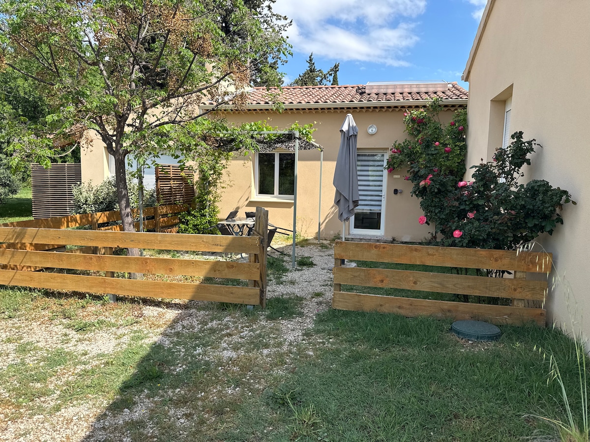 este alojamiento tranquilo ofrece una estancia relajante para todos . Esta pequeña casa de 55 m2 adosada a otra casa tiene un aparcamiento en la parte trasera cercado con un portal, delante de la casa se puede disfrutar de su jardín terraza piscina.. la casa tiene 2 dormitorios con cama de 2 plazas , hay un sofá cama y una cama plegable , a 5 minutos de la salida de la autopista